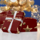 Christmas Stars Pattern Faux Gold Elegant Red and Gold Christmas Gift Wrap, Gift Wrapping Paper with custom text "We Wish You A Merry Christmas! With Love, The Williams Family", you can change or delete the text