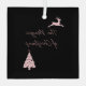 Modern black and pink design decorated with script font a reindeer and tree.