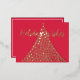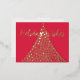 The Elegant Christmas Script Holiday Wishes Postcard design features a tree with golden flakes, the image features a simple yet elegant gold and red design which can be used for anyone during the holiday season.