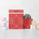 This classic gift wrap is perfect for festive holidays and winter celebrations. It features an ornate geometric pattern, with interconnected flower shapes, heart-shaped petals, and decorative snowflakes. This vintage inspired, traditional design adds a touch of elegance to any gift! Printed colours: red and a faux gold texture — you can also change the background colour by using the design editor tool. This seamless wrapping paper is available with a matte or glossy finish.