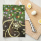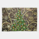 Elegant Christmas Tree Barn Wood Gold Design Tea Towel