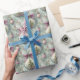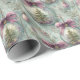 This vintage Victorian-style bauble and bow wrapping paper captures the charm of an old-world Christmas, with soft pastel ornaments with snow covered Christmas trees inside the baubles with a delicate blush pink ribbon details, and a romantic antique background.