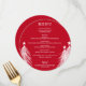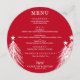 An elegant red round dinner menu with white Christmas trees features your menu details in chic lettering. Perfect for a holiday Christmas party or any special event with a sit down dinner.