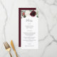 This Christmas winter wedding menu is perfect for an elegant holiday wedding. The design features beautiful watercolor white and burgundy florals with pine, holy berry and eucalyptus greenery. This is a perfect colour scheme for a winter wedding. Make this menu your own by including all of your details. For further customisation, use the advanced design tool to modify this template.