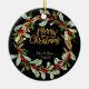 Elegant Christmas Wreath Customisable Name Black Ceramic Ornament