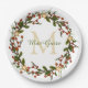 Elegant Christmas Wreath Monogram Initial Paper Plate