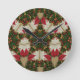 Elegant Christmas Wreath Red Green Kaleidoscopic Round Clock