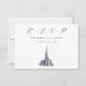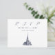 This formal wedding RSVP card features a vintage illustration of a church, which you can replace with an image of your wedding venue (transparent or white background preferred). Elegant dark blue lettering lays out the title, whether the guest will accept or decline, and the date to respond by. There's also a line for you to hand-write the guest's ID number (which is helpful when keeping track of many RSVPs).