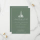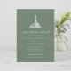 This classic wedding save-the-date features a detailed illustration of a church, which you can replace with an image of the destination where you will be married (transparent or white background preferred). Elegant white lettering displays the title - Save the Weekend - as well as the bride and groom names, and details of the wedding, including the location, date and that a formal invitation will follow. Printed on a sage green background.