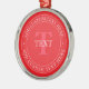 Elegant Circular Text Template Editable Red White Metal Ornament