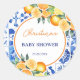 Elegant Citrus Blue Tiles Baby Shower Classic Round Sticker