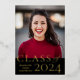 An elegant foil pressed graduation invitation featuring a vertical photo with Class of 2022 and minimal editable text on the front. The back has a place to use to announce the graduation and party details.