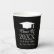Elegant class of 2025 senior name graduation party Paper Cups. Personalize with your own name and colors. Black and white design with tassel cap icon and stylish typography template.