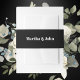 The Elegant Classic Black & White Wedding Invitation Belly Band is the quintessential accessory for couples who embrace timeless sophistication. With its striking black backdrop and crisp white accents, this belly band elegantly wraps around your invitations, highlighting your names or initials in a refined manner. Ideal for formal or modern weddings, it not only keeps your suite organised but also adds a chic touch that reflects your style. This beautiful detail creates a lasting impression for your special day, making it truly memorable.