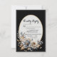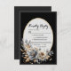 Elegant Classic Floral Rustic Wedding Response 5. This beautifully designed wedding customisable RSVP card for your guests, features a timeless floral design with soft ivory, gold, and silver-grey tones. Set against a classic black background, it beautifully frames the event details in a sophisticated serif and script font combination.