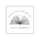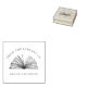 The stamp features a curved elegant text on the top and a gorgeous image of an open book at the centre. Below the image is a name you can replace with yours.