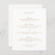 Elegant faux gold wedding menu featuring a simple and minimal design with the title in a traditional serif font and the course headers in an elegant calligraphy script. A classic style that is perfect for a formal wedding.