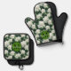 Elegant classic green botanical white floral oven mitt & pot holder set