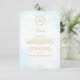 This elegant timeless classic wedding design combines classic laurel wreath enclosing Bride’s and Groom’s monograms and a light turquoise watercolor ombre. Gold lettering (gold is not real gold but colour). Elegant font combo.