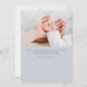This beautifully simple and elegant birth announcement has a single oval photo on front with classic typography details for the baby's name and statistics including birth date, weight, and length. Soft pastel floral detailing in a blush pink coral pastel and soft periwinkle blue dots. The back side includes a space for optional custom personalised family message and large rectangular second photo.