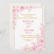 This elegant wedding invitation features a soft pink cherry blossom design with delicate golden accents, creating a romantic and luxurious look. The floral arrangement frames the content area beautifully, making it perfect for spring or nature-inspired weddings.