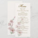 Add a touch of elegance to your reception with this floral wedding menu featuring delicate blush pink magnolia flowers and classic serif fonts. Perfect for a romantic garden wedding, rustic celebration, or minimalist floral theme.