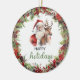 Elegant classic red and green Santa reindeer Ceramic Ornament