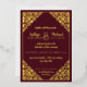 Rich wine burgundy red background sets off the real gold foil design and your invitation text. Elegant. Classic. This design was created from vintage scrollwork filigree corners into a simple frame with a calligraphy Ampersand. Background colour can be changed. Graphically designed by internationally licensed artist and designer, Audrey Jeanne Roberts, copyright.