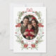 The wreath frame adds a touch of vintage elegance to the card. It features an intricate green and red winter botanical watercolor design that is both timeless and unique, making your holiday card stand out from the rest. On the reverse side you'll find ample space to add your personal Christmas wishes to friends and family.
