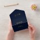 With its elegant dark blue background and gold text, this all-in-one wedding invitation is a work of art, setting the stage for a wedding day filled with love, joy, and unforgettable moments.
