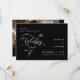 An elegant black and white wedding save-the-date featuring romantic, swirly calligraphy lettering with optional text and a photo on the back. Perfect for any season. For more advanced customisation of this design, please click the BLUE DESIGN TOOL BUTTON above!