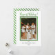 Elegant and classy styled white and faux green foil photo holiday design featuring a faux green foil frame on front for your photo and the greeting, "Happiest Holidays" also in faux green foil with faux green foil and white diagonal stripes on back. Composite design by Holiday Hearts Designs (rights reserved) with template placeholder photo via Unsplash.