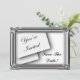 Here's an elegant invitation in classic white and silver that's sure to get attention! "You're Invited" graphic on a stack of invites is in formal elegant script on the front. "Save The Date!" text, also on the front, can be changed and customised. Easily customise the beautiful matching black script text on the front and back with names, date, and other information. Great Save The Date invitations, weddings, engagements, anniversaries, birthdays, graduations, reunions, holiday parties, just any special formal event, etc. Especially nice for silver 25th wedding anniversaries with the added beautiful silver frame on both the front and back of the invitation.