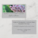 Customise this beautiful business card with your own text. Add your own photograph to this classy card or use this beautiful close up lilac plant photograph I took. This photo business card is framed light grey with dark grey script for your business name or other preferred text. Add your company name or profession and signature custom script name. On the back you can customise all the simple clean text to include your business contact information and motto. This would be a great business card for a landscape architect, landscape designer, florist, gardener, life coach, therapist, spiritual leader, natural therapist or out door professional. It would also suit a professional photographer well to add your own photograph.