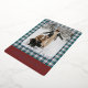 This holiday card stands out with its elegant and unique design. It features a timeless "Happy Holidays" greeting printed in real gold foil, customisable to your preference, on a teal blue, white, and maroon red plaid pattern design. The front offers space for your family name, photo, and custom seasonal greeting, while the back is perfect for adding a personalised seasonal message or poem. It's a stylish way to send your holiday wishes.
