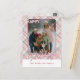 This holiday greeting postcard stands out with its elegant and unique design. It features a timeless "Happy Holidays" greeting, customisable to your preference, on a dark red, pink, and green plaid pattern design. The front offers space for your family name, photo, and custom seasonal greeting, while the back is perfect for adding a personalised seasonal message or poem. It's a stylish way to send your holiday wishes.