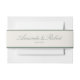Minimalist personalized wedding invitation belly bands featuring elegant script names in ivory and sage green color.