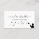 Cleaning professional business cards featuring a classic white background, black sillohette of a lady figure, with a duster and a sprinkling of stars , name and business. On the reverse is a contemporary template that is easy to personalise.