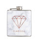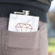 The flask itself is fine. It’s a cheap flask, obviously bought in bulk, however am prepared to overlook that. Given that it is a personalized item, I would have liked to have seen gift boxing instead of the generic packaging. Terrible printing, and/or quality. It’s a cheap, tacky vinyl. It is not cut straight and is also applied in a way that it is overhanging the bottom, causing the glue to catch on items and it will eventually roll and tear, damaging the wrap.