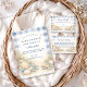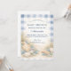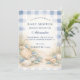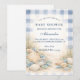 A soft coastal design featuring an elegant oval wreath composed of seashells, oysters, starfish, sea glass, and delicate dune grasses. Neutral sandy tones blend beautifully with muted blue accents, creating a refined seaside aesthetic that feels airy and sophisticated. The warm ivory background enhances the natural textures while keeping the layout clean and graceful. Perfect for a beach-inspired celebration with timeless, understated charm.