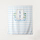 Fabric backdrop to use as a party welcome sign and/ or photo backdrop. The design features a timeless pale blue and white coastal-inspired monogram crest against a blue and white stripe print. I have invitations and other stationery in the same design (please see collection). Shown here for a Wedding / Bridal Shower but all of the text can be customised to your needs. You can also add or delete text fields from inside the design tool.