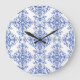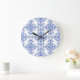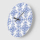 Elegant Cobalt Blue and White Floral Style Damask Large Clock