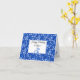 Cobalt blue watercolor tropical leaves pattern on white covers the front of this personalised card. Modern script happy birthday greeting, matching elements and name on back, decorate this 4"x5.6" birthday card. Change text on front, inside and back to make it yours; add-to or remove using the Template provided. White envelope is included or mark "none" for reduced price. Available in Standard 5"x7" and Big 8.5"x11" size. Highly rated and excellent print quality. See "About This Product" for more information.