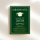 Elegant green college graduation announcement featuring your choice of real gold or silver foil, a grad cap and the graduate's name, class year, school, degree and major or honours.