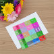 The vibrant and cheerful floral thank-you card showcases a fun geometric pattern featuring a macro photograph of a single daisy in an inclined position, arranged within colourful squares. It's a stylish and contemporary choice for flower enthusiasts. Express your gratitude with the charm of flowers.