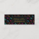 Skinny business cards you can customise with your name and website or other info. Perfect for weddings. Designed with an elegant pattern with a graphic illustration of fluttering butterflies in many bright colours, contrasting very nicely on the black background. Whimsical florals, sprigs and leaves add a bit of charm. A black frame with a gold coloured border layered over top with your personalised text inside.