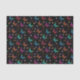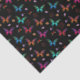 Tissue paper designed with an elegant pattern with a graphic illustration of fluttering butterflies in many bright colours, contrasting very nicely on the black background. Whimsical florals, sprigs and leaves add a bit of charm.