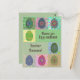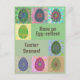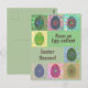 The design features an abstract presentation of a collage of Easter eggs in green, pink, blue, yellow, purple, and orange among other shades and colours. Two typography fields, which currently read "Have and Egg-cellent" "Ester Season!" are customisable for personalisation of the Easter wishes.