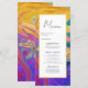 This modern abstract wedding menu is perfect for couples who want to add a touch of fun and personality to their wedding reception decor while also letting their guests know what delicious meals and drinks they'll be enjoying. Our artistic design is fully customisable, meaning you can add your own personalised touch to make your menu cards truly unique. The chic and stylish design features beautiful typography on a pastel colourful abstract oil painting background. The combination of these two elements creates a stunning effect that will be sure to impress your guests. The menu is printed on premium card stock for a luxurious feel. add some personality and fun to your wedding reception decor while also providing practical information for your guests.