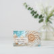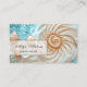 This elegant coastal business card features a conch in a modern 3D style, shells and ocean water in neutral an turquoise tones.